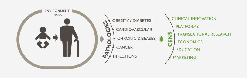 CENS est  un projet ¨¤ la port¨¦e scientifique, ¨¦conomique et soci¨¦tale. Ce lieu de compr¨¦hension mutuelle entre les acteurs de l'industrie, de la science et des collectivit¨¦s publiques se mat¨¦rialisera notamment par la cr¨¦ation d¡¯un centre public-priv¨¦ d¡¯excellence en recherche et innovation. En 2015, un nouveau b?timent de 6000 m? accueillera en effet, sur le site de l¡¯h?pital Lyon-Sud, les ¨¦quipes pluridisciplinaires du laboratoire CarMeN (CardioM¨¦tabolisme et Nutrition) et du CRNH Rh?ne-Alpes (Centre de Recherche en Nutrition Humaine) travaillant en ¨¦troite collaboration avec le Centre de recherche de l¡¯Institut Paul Bocuse. Ce b?timent, financ¨¦ ¨¤ hauteur de 12 M€ par les collectivit¨¦s territoriales (Grand Lyon, R¨¦gion Rh?ne-Alpes, D¨¦partement du Rh?ne) dans le cadre du plan Campus Charles M¨¦rieux, sera d¨¦di¨¦ ¨¤ la recherche, la formation et l¡¯accueil de projets collaboratifs.